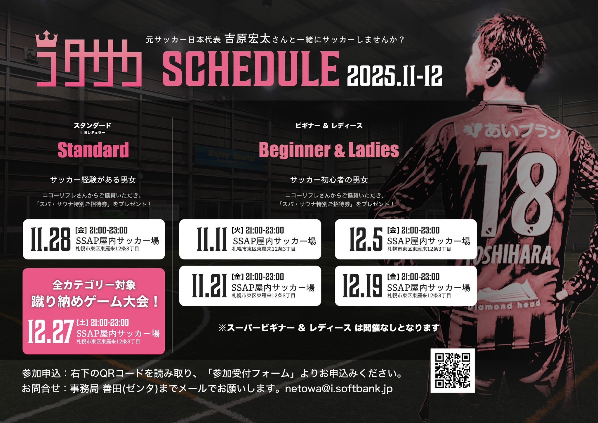 札幌社会人サッカーチーム『NetWork』、それと並行に活動をしている、2018年4月〜総監督の吉原宏太さんと代表のシゲで取り組んでる【コタサカ】⚽️のご案内です。